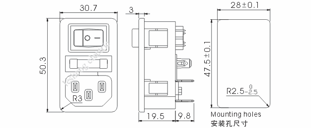 裝配方式:插卡式,裝配板厚度1.0、1.5或2.0mm