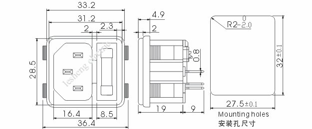 6. 裝配方式:插卡式,裝配板厚度1.0、1.5或2.0mm