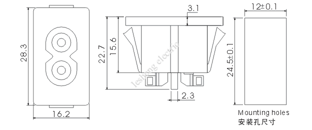 5. 裝配方式:插卡式,裝配板厚度0.8,1.0或1.2mm