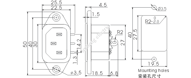 5. 裝配方式:M3螺絲固定 、PCB安裝
